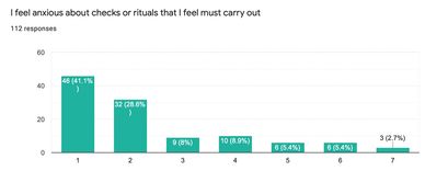 Whereas most people don't repond to anxiety or stress by creating rituals or checking, our survey found that 1 in 5 people, do so sometimes or often (rating on a scale from 0-7).